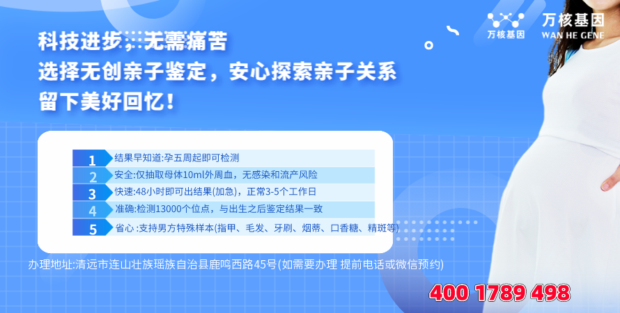 连山无创DNA亲子鉴定是通过DNA检测比对法,确定父母与子女之间亲缘关系的方法。连山地区,如果你想要做无创DNA亲子鉴定,首先需要了解做无创DNA亲子鉴定的步骤和注意事项。具体鉴定方案可咨询连山亲子鉴定基因检测中心,连山亲子鉴定基因检测中心以诚信为本,秉承一切“真”、“精”、“密”的原则,为广大客户提供精准、高效、保密的无创DNA亲子鉴定的服务。